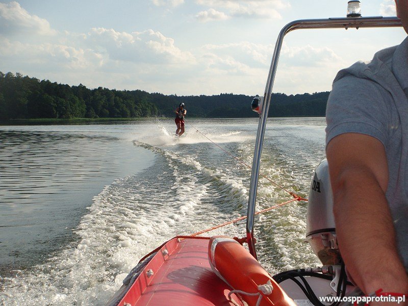 Łódź hybrydowa z silnikiem zaburtowym o mocy 30kM. Ponton jest przystosowany do transportu 6 osób.
