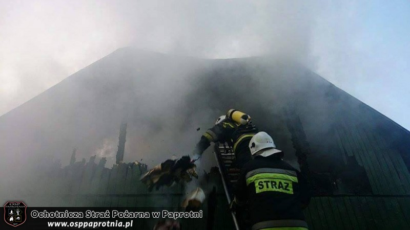 Dnia 14-06-2015 o godzinie 4,30 wpłynęło zgłoszenie o palącym się budynku mieszkalnym przy ulicy Spacerowej w Teresinie, w który najprawdopodobniej uderzył piorun. Na miejsce udaliśmy się 639[M]79 – GCBA 5/32 Scania za nami przybyły Osp Niepokalanów GBA 639[M]71 – GBA 2,5/16 Star/MAN oraz JRG SOCHACZEW. 631[M]21 – GBA 2,5/24 Renault Midlum 220.14 Działania w pierwszej fazie polegały na rozpoznaniu palącego się budynku. Ratownicy w aparatach powietrznych udali się na poddasze gdzie był zlokalizowany pożar. Działania polegały na podaniu trzech prądów wody z szybkiego natarcia. Spaleniu uległa znaczna część budynku. Ważnym elementem również była obrona sąsiedniego domu. W dalszych działaniach należało posprzątać spalone rzeczy i je przelać. Na szczęście nikomu z mieszkańców nic się nie stało i opuścili oni dom przed przybyciem jednostek. W akcji udział brało 6 strażaków z Osp Paparotnia