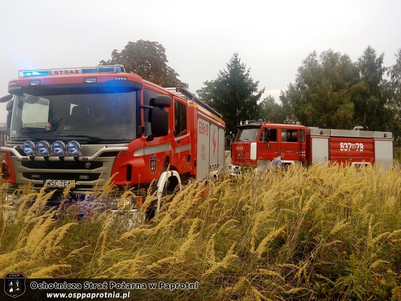 Dnia 28.08.2015 przed godzina 15.00 wpłynęło zgłoszenie, o palącej się trawie w miejscowości Teresin. Na miejsce udaliśmy się niezwłocznie Scania P370 CB 4x4 EHZ GCBA 5/32,639[M]79. Po dojeździe okazało się, że pala się sucha trawa na obszarze około 100m2. działania strażaków polegały na podaniu jednego prądu wody z szybkiego natarcia. Na miejsce pożaru została również zadysponowana jednostka z OSP Teresin 637[M]78.
