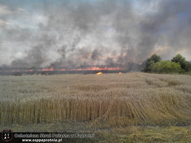 Dnia 04-08-2014 PSK Sochaczew zadysponował Osp Paprotnia do pożaru zboża które miało miejsce w miejscowości Pawłowice gmina Teresin. Na miejsce został zadysponowany GBA 2,5/28 na miejsce pożaru przybyły także jednostki z powiatu warszawa zachód OSP GAWARTOWA WOLA GBA 2,5/16 OSP STARE GNATOWICE GBA 3,5/16 oraz OSP BIENIEWO GCBA 5/32. Działania polegały na użyciu tłumnic i podaniu prądu wody z szybkiego natarcia do ugaszenia palącego się zboża.Za pomocą ciągnika z broną talerzową udało się odciąć przedostawanie się ognia dalej. spaleniu uległo około 3 hektarów W działaniach brało udział 6 strażaków z osp Paprotnia