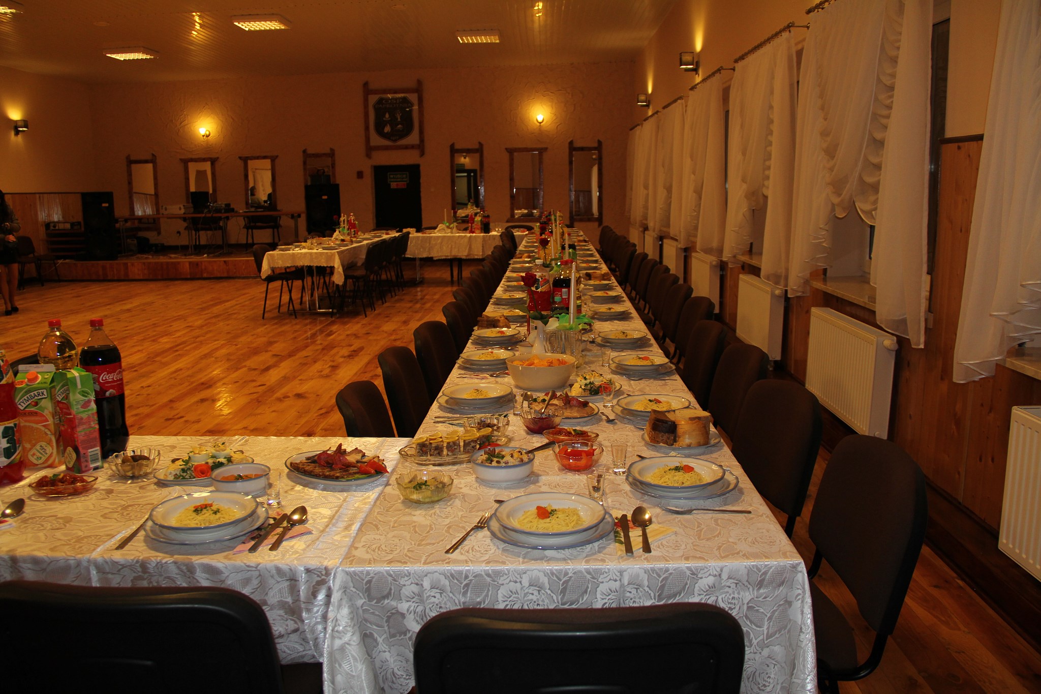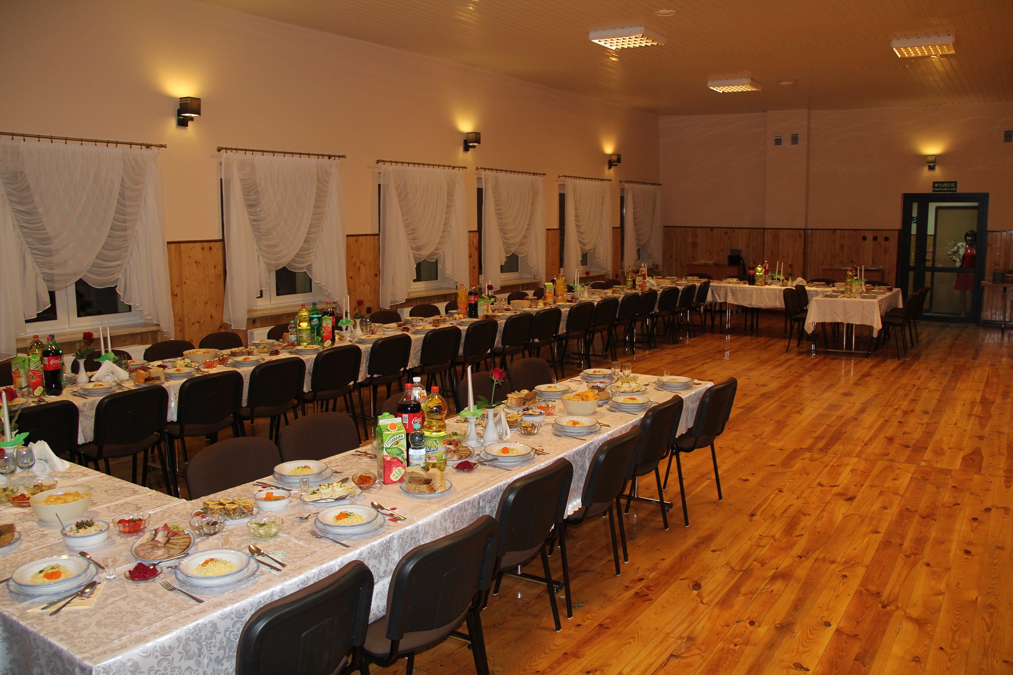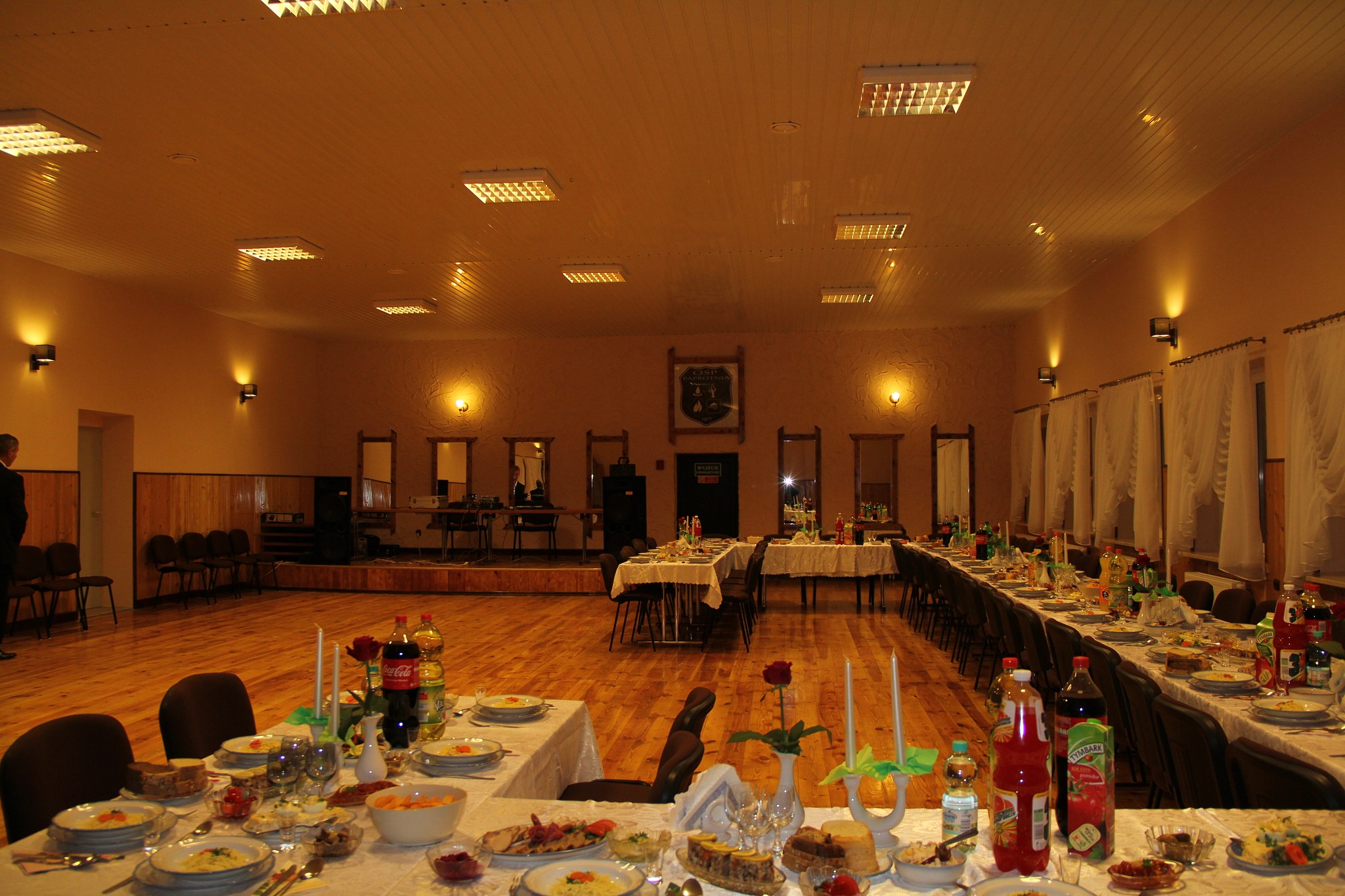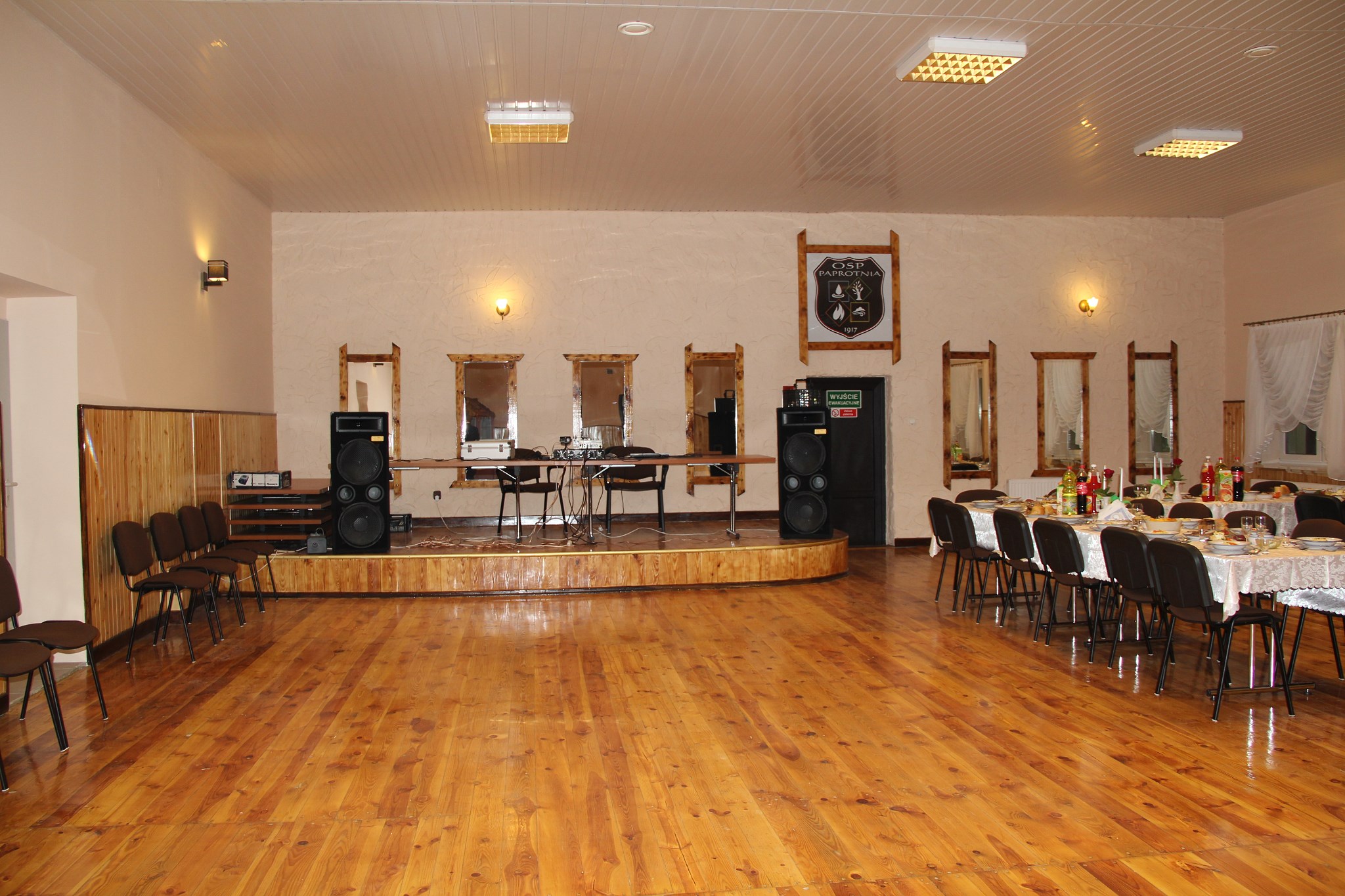 Oferowana sala z parkietem tanecznym i sceną dla orkiestry pomieści 110 osób.