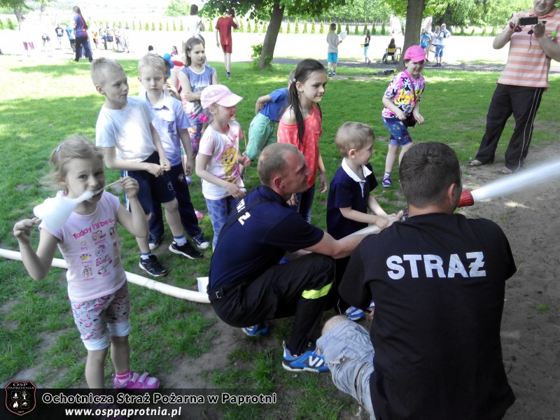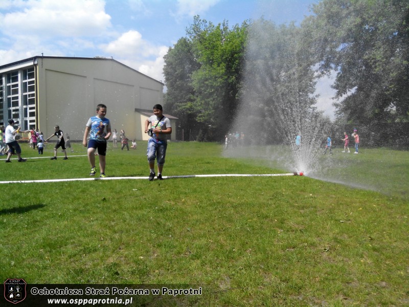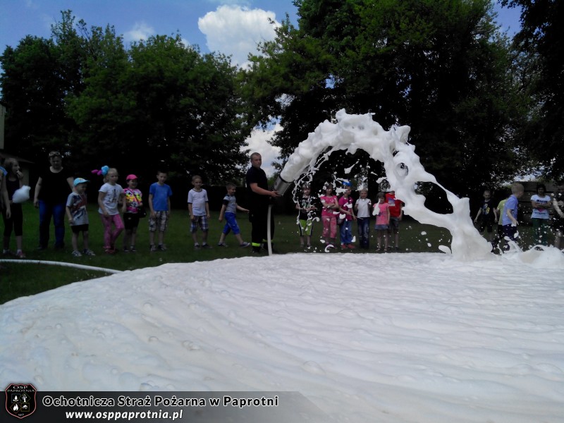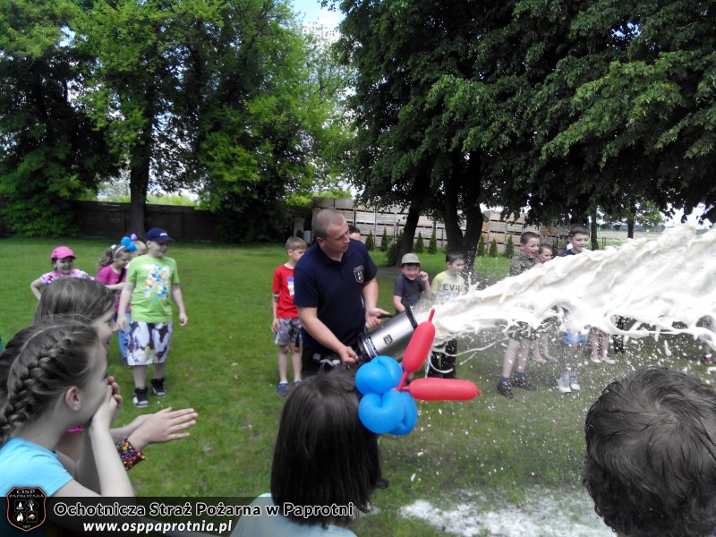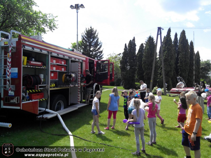01.06.2015 roku do Szkoły Podstawowej w Paprotni z okazji dnia dziecka przybyła tutejsza Ochotnicza Straż Pożarna. Spędziliśmy czas z dziećmi pokazując i tłumacząc im jak działa nasz sprzęt. Był pokaz działania kurtyn wodnych i wytwornicy piany. Nie jednokrotnie najmłodsi sami próbowali swoich sił operując wodą. Dziękujemy za miłe spędzony czas a dzieciakom jeszcze raz: Wszystkiego Najlepszego!